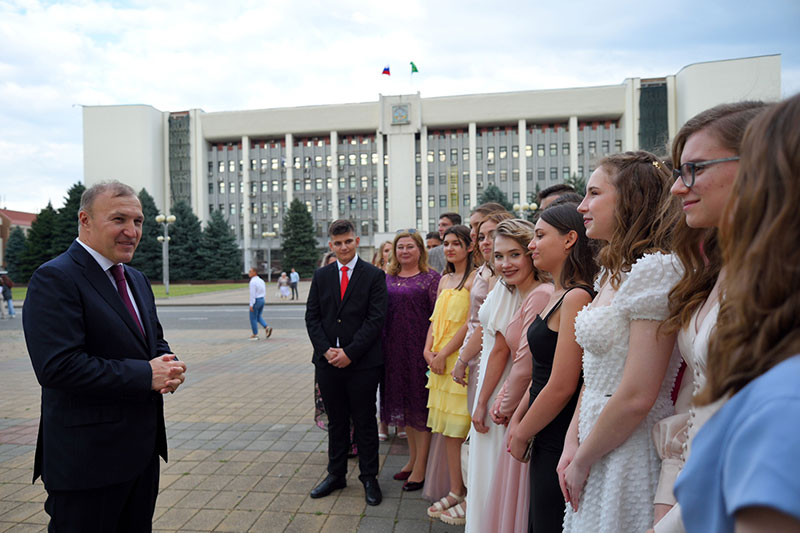 Мыекъуапэ игупчэ шъхьаIэ ахэр къыщызэрэугъоигъэх. ЕджапIэр къэзыухыгъэхэм афэгушIонхэу къэкIуагъэх кIэлэегъаджэхэмрэ ны-тыхэмрэ. Адыгеим и ЛIышъхьэу КъумпIыл Мурат, республикэм ихэбзэ къулыкъухэм ялIыкIохэр, муниципалитетхэм япащэхэр мэфэкI Iофтхьабзэм хэлэжьагъэх.