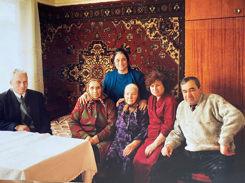 Сурэтым итхэр: ныжъ-тыжъхэм япхъорэлъфэу Долэт акокI ис; тянэу Асет, джабгъумкIэ щысыр тятэшыпхъоу Зулихъан, ащ къыгосыр тятэшым икIалэу Ким, сэмэгумкIэ — сшыпхъу нахьыкIэу Хъанят, ащ къыгосыр сшынахьыжъэу Борис, акIыб дэтыр тятэшым ыпхъоу Роз.
