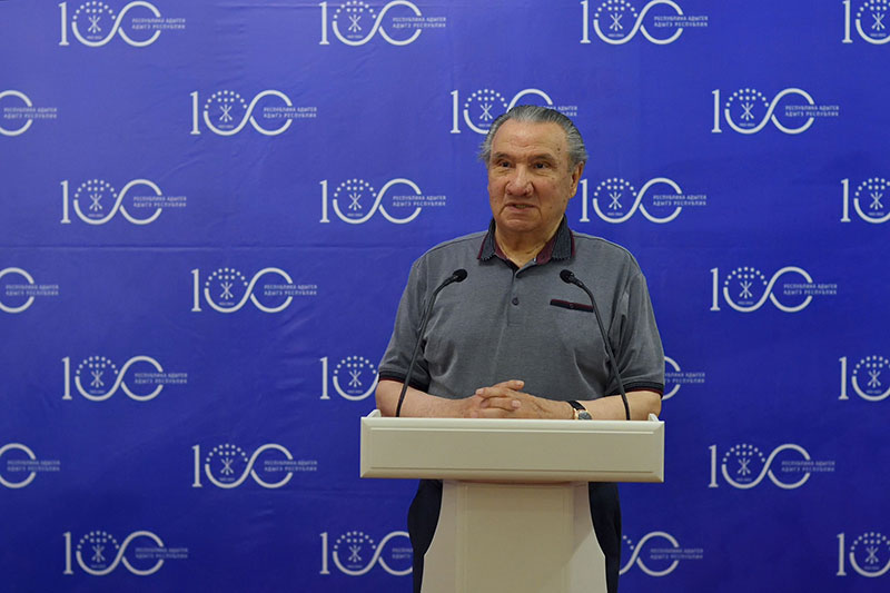 «Адыгеим ия 100-рэ илъэс республикэмкIэ мэхьанэшхо зиIэ мэфэкIэу щыт. Урысыем и Президентэу Владимир Путиным ышIыгъэ Указым диштэу ащ игъэмэфэкIын макIо. Рахъухьэгъэ Iофтхьабзэхэм адиштэу социальнэ псэуалъэхэмрэ инфраструктурэ псэуалъэхэмрэ агъэпсыщтых, концертхэр, къэгъэлъэгъонхэр, просветительскэ, патриотическэ Iофтхьабзэхэр бэу зэхащэщтых. «Почта России» лъэшэу тыфэраз Адыгеим фэгъэхьыгъэ почтэ блокымрэ юбилей маркэмрэ якъыдэгъэкIын къызэрадыригъэштагъэм фэшI. Ахэм амалышIу къатыгъ хэгъэгум исхэм тиреспублики, ащ ичIыпIэ лъэгъупхъэхэми нэIуасэ зафашIынэу», — къы-Iуагъ Адыгэ Республикэм и ЛIышъхьэу КъумпIыл Мурат Iофтхьабзэм къытегущыIэзэ.