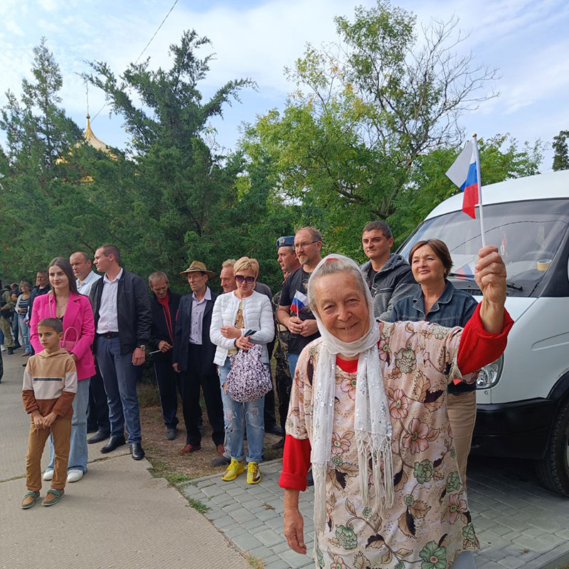 Урысые быракъым имэхьанэ къыхигъэщызэ Афган щытхъум ипарк щыкIогъэ зэхахьэм къыщыгущыIагъ Геническэ районым иадминистрацие ипащэ игуадзэу В. Разумнэр. Нэужым быракъыр ыIэтыгъ Афганистан иветеранхэм я Союз ипащэу Владимир Басовым. Ащ ыуж культурэм и Гупчэ иорэдыIо куп концерт къытыгъ.