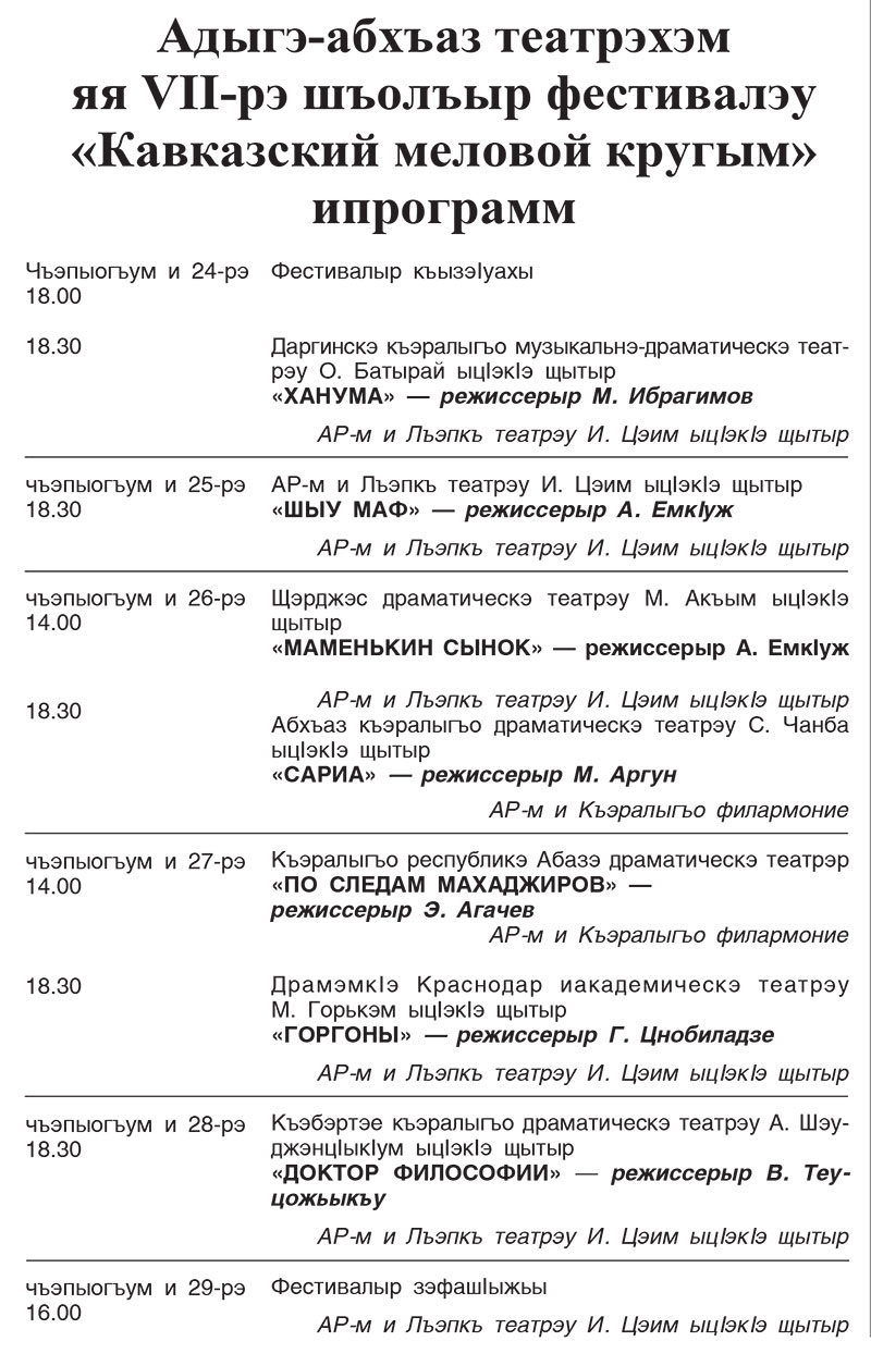 Адыгэ-абхъаз театрэхэм яя VII-рэ шъолъыр фестивалэу «Кавказский меловой кругым» ипрограмм