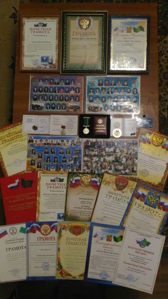 IэпкIэ-лъапкI ыныбжь емылъытыгъэу (илъэс 80 хъугъэ). ИIофшIакIэ зэрэщысэтехыпIэм, уасэ зэрэфашIырэм ишыхьатых медальхэу, щытхъу тхылъэу къыфагъэшъошагъэхэр. ЫгъэлъэпIэрэ шIухьафтын шъхьаIэмэ ащыщых бгъэхалъхьэу «За верность профессии» зыфиIоу Урысыем гъэсэныгъэмкIэ и Министерствэ къыфигъэшъошагъэр, медальхэу «Почетный работник образования РФ», «100 лет РА» зыцIэхэр. Къэпчъыгъуай, къэлъытэгъуай Нуриет игъэхъагъэхэр. Илъэс 22-рэ а зы еджапIэм Iоф щыдэсшIагъ, сырэгушхо ащ фэдэ цIыф гъусэу зэрэсиIагъэм.