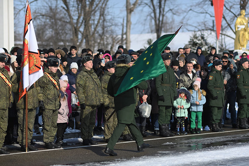 ИкIэухым Адыгэ Республикэм и Къэралыгъо быракъ Мыекъопэ чIыпIэ гарнизоным ратыжьыгъ.