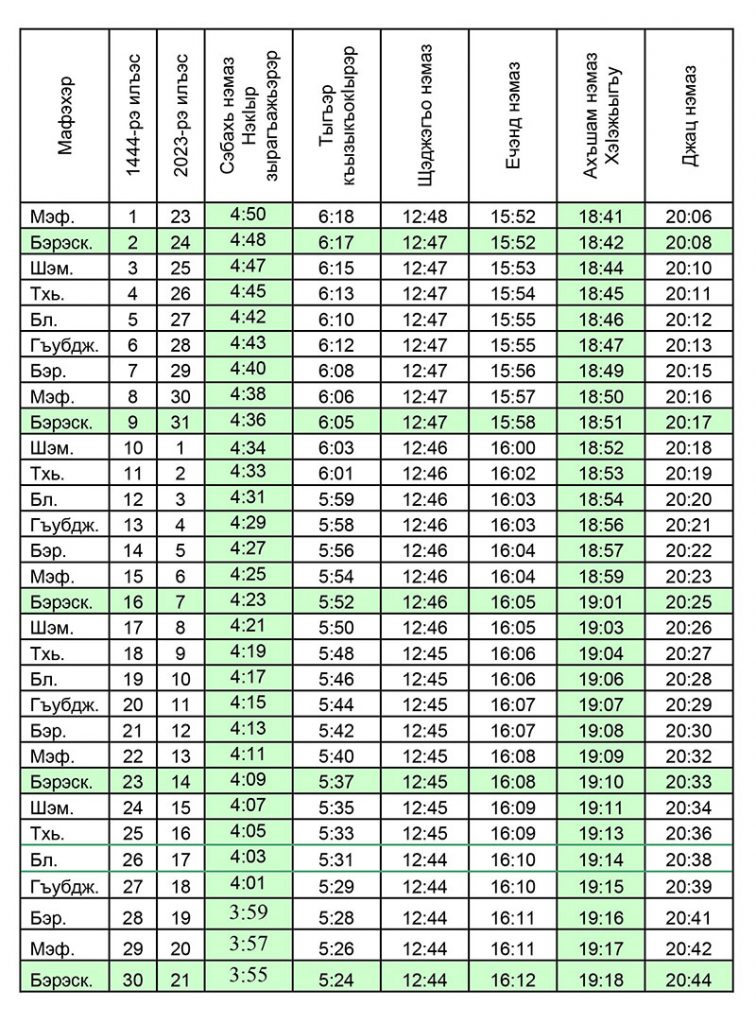 Мы мазэм сэдакъэ птыныр, КъурIан уеджэныр, тэрауихь нэмаз уахътэхэр блэмыгъэкIынхэр псэпэшхоу щыт. УиIахьылхэм, уигупсэхэм а мазэм къыкIоцI уахахьэмэ, уалъыкIомэ, псапэ къыпфыхэкIыщт.