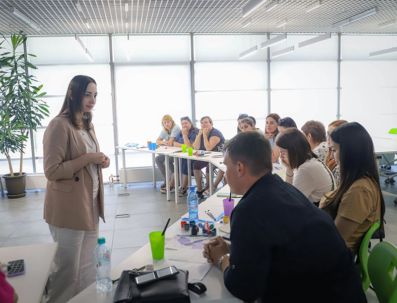 УплъэкIунхэм яятIонэрэ едзыгъо АКъУ-м иIофышIэхэм гъэмафэм рагъэкIокIыщт, ар зыфэгъэхьыгъэр шъолъырым икIэлэегъаджэхэу мы зигугъу къэтшIыгъэ гумэкIыгъохэр зиIэхэм Iоф адэшIэгъэныр, курсхэр афызэхэщэгъэнхэр ары. Ащ фэдэ апэрэ тренинговэ десэхэр рагъэкIокIыгъахэх. Ахэр языгъэхьыгъэхэр психологие шIэныгъэхэмкIэ кандидатэу, АКъУ-м кIэлэегъэджэ психологиемкIэ икафедрэ идоцентэу, психологие гупчэу «Рост» зыфиIорэм ипащэу Бырсыр Асиет ары.