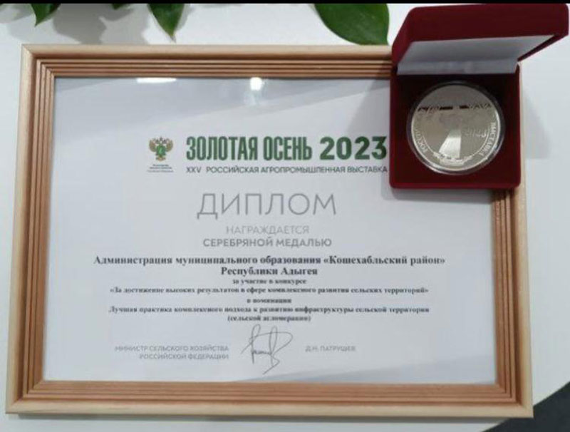 Къуаджэм хэхъоныгъэ егъэшIыгъэнымкIэ гъэхъэгъэшхохэр зэриIэхэм фэшI Кощхьэблэ районым иадминистрацие тыжьын медаль къыфагъэшъошагъ.