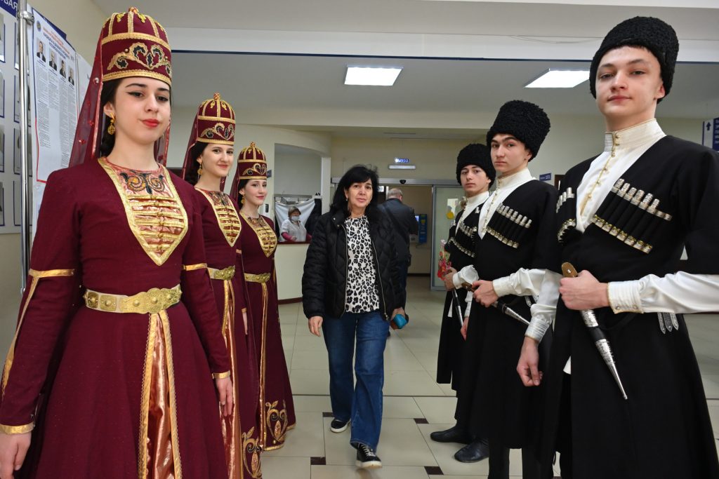 — Президентым ихэдзынхэр къэралыгъом къыхэхьажьыгъэ шъолъырыкIэхэми ащэкIох. Геническэ районым щыпсэухэрэм Адыгеим икIыгъэ артистхэм орэдхэр къафаIуагъ — нэбгырищ хъурэ купэу «Вечный огонь» зыфиIорэр ащ щыI. Хэдзынхэм къякIолIэгъэ пстэуми щэе стырыр, адыгэ къуаер, адыгэ шхыныгъохэу хьалыжъор, пэлкъаор апагъохы, — къыIотагъ ЛIышъхьэм.