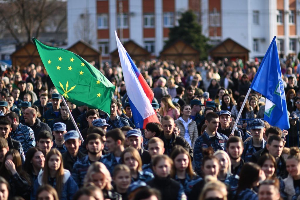 Ащ епхыгъэу щытыгъ Лениным ыцIэкIэ щыт гупчэм щыкIогъэ мэфэкI концертыр. Къырым щыпсэухэрэм зэрадырагъэштагъэм ишыхьатэу Адыгеим ис нэбгырэ мин заулэ Iофтхьабзэм хэлэжьагъ. Адыгеим и ЛIышъхьэу КъумпIыл Мурат, АР-м и Къэралыгъо Совет — Хасэм и Тхьаматэу Владимир Нарожнэр, хабзэм ифедеральнэ ыкIи иреспубликэ къулыкъухэм ялIыкIохэр джащ фэдэу ащ хэлэжьагъэх. Къэзэрэугъоигъэхэм апашъхьэ къыщыгущыIэзэ Адыгеим и ЛIышъхьэ къызэрэхигъэщыгъэмкIэ, Урысыем и Президентэу Владимир Путиным ишIуагъэкIэ Къырымрэ Севастопольрэ ащыпсэухэрэм зытыраубытагъэм дырагъэштагъ, джащ тетэу тарихъ зэфагъэр зыпкъ игъэуцожьыгъэ хъугъэ.