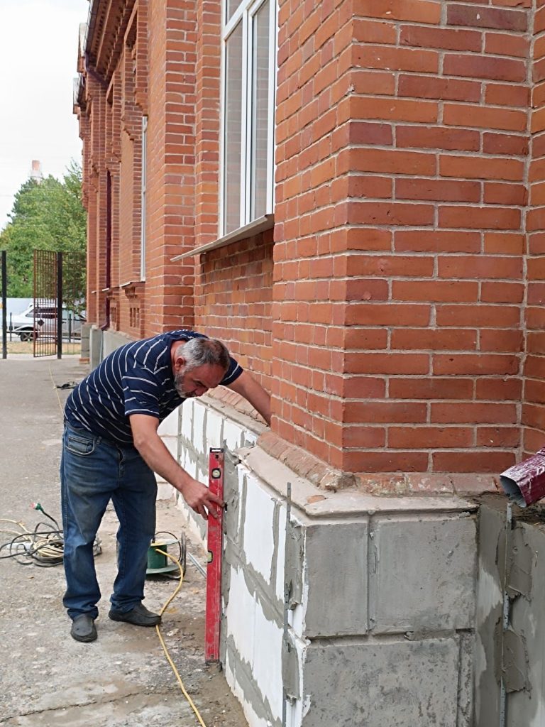ИлъэситIу хъугъэу лIэшIэгъум ехъу зыныбжь унэм псэолъэшI IофшIэнхэр щэкIох. ГъэцэкIэжьынхэр Iахь-Iахьэу зэтеутыгъэу рекIокIых: псэуалъэм ыкIоцIкIэ рагъэжьэгъагъ, джы унэ кIыбым игъэкIэжьын дэлажьэх. Чырбыщ гъэлагъэм ищыпэ теплъэ къычIагъэщыжьы, ышъо къырагъэубытыжьы. ЕджапIэм ипащэу Алексей Самоквитовым къызэриIуагъэмкIэ, псэуалъэр гъэцэкIэжьынхэм афэныкъо дэдагъ. Зигъо гъэтэрэзыжьын горэхэр ренэу рашIылIэщтыгъэх нахь мышIэми, ахэм япIалъэ кIэкIыгъэ, гузэжъогъур ригъэкIыщтыгъэ къодый ныIэп.