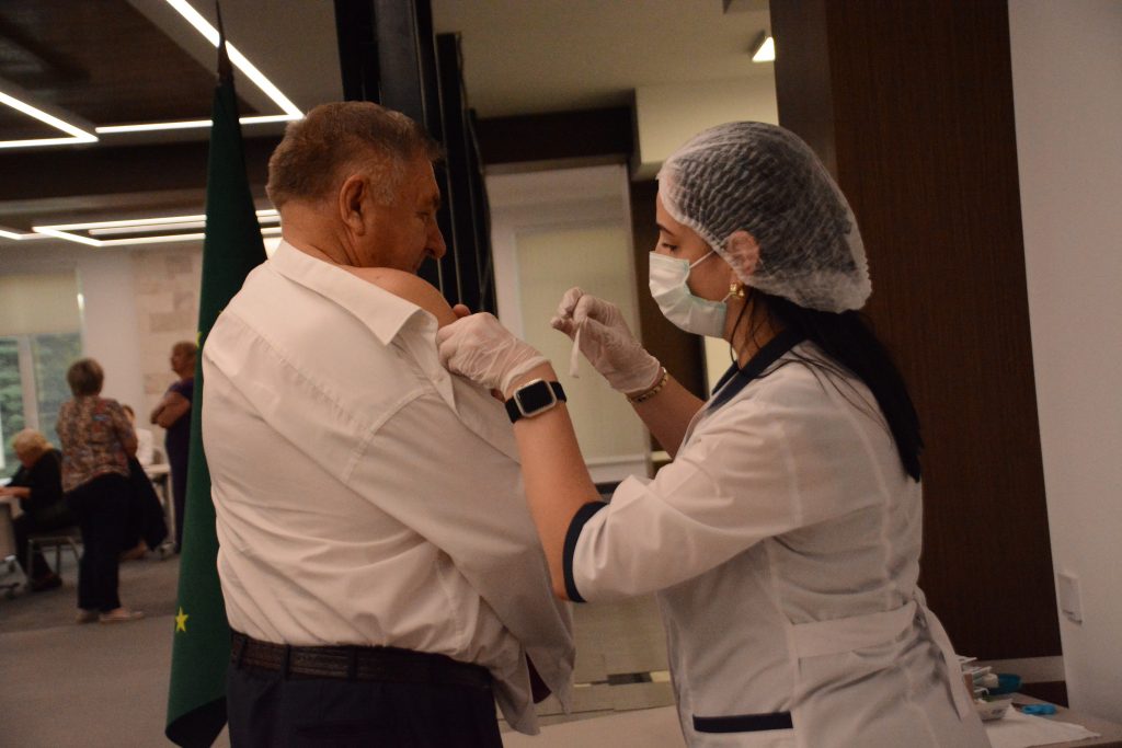 Ащ къыдыхэлъытагъэу, тыгъуасэ АР-м и Правительствэ зычIэт Унэм ыкIи муниципалитетхэм яадминистрациехэм ар ащызэхащагъ. Прививкэм ихэлъхьан епхыгъэ Iофтхьабзэм дырагъэштагъ депутатхэм, министрэхэм, комитетхэм япащэхэм, къулыкъу зэфэшъхьафхэм яIофышIэхэм. Вакцинэхэм ащыщэу «Флю-М» зыфиIорэр ахэм ахалъхьагъ.