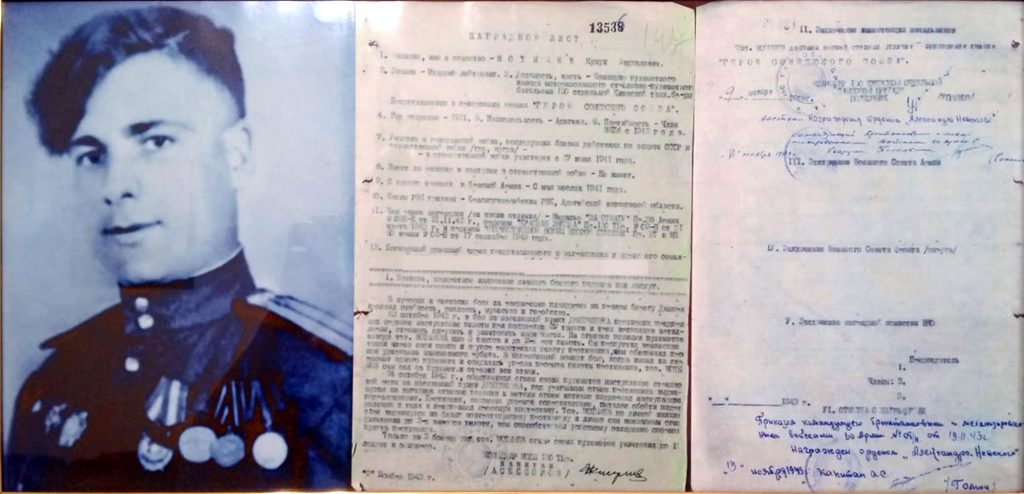 Тикъэралыгъо Хэгъэгу зэошхом ТекIоныгъэр къызщыдихыгъэр илъэс 75-рэ зэхъум, паспортыр (картоным тегъэпкIагъэу сурэтхэр) фоторамкэм дэтэу, ащ тятэ исурэт, Советскэ Союзым и ЛIыхъужъыцIэ шэкIогъум и 9-м 1943-рэ илъэсым ыкIи Александр Невскэм иорден къызэрэфагъэшъошагъэхэр къэзыушыхьатырэ документхэм якопиехэр зэгъусэхэу зэдэгъэпкIагъэхэу дэтхэу къысатыжьыгъ. «Наградной лист» зыфиIорэм итхэгъэ лъэкъуацIэм хэукъоныгъэ фашIыгъ — «Мотыжев».