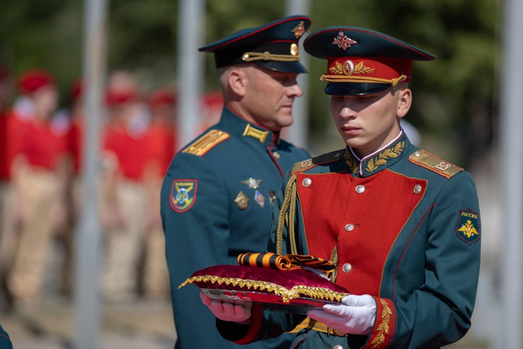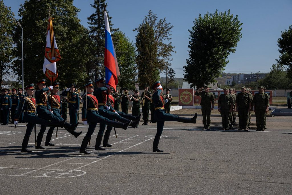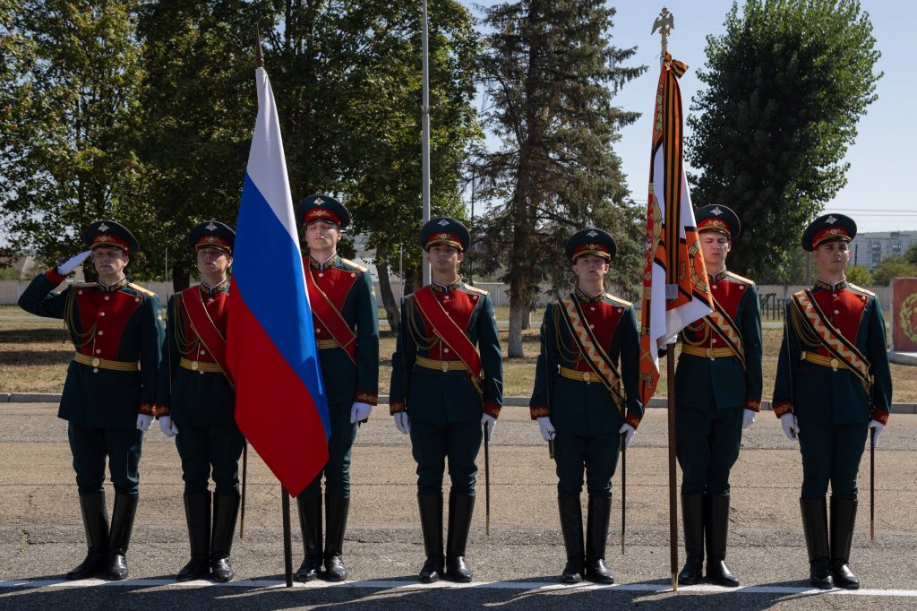 Урысые Федерацием и Къэралыгъо Быракърэ дзэ частым ибыракърэ пчэгум къызэрэрахьагъэмкIэ Iофтхьабзэр рагъэжьагъ. Бригадэм хэтхэр хэгъэгум и Президент и Указ нэIуасэ зыфашIыхэ нэуж щытхъуцIэмрэ гвардейскэ лентэмрэ ащ етыжьыгъэнхэм фытегъэпсыхьэгъэ Iофтхьабзэр рагъэжьагъ.