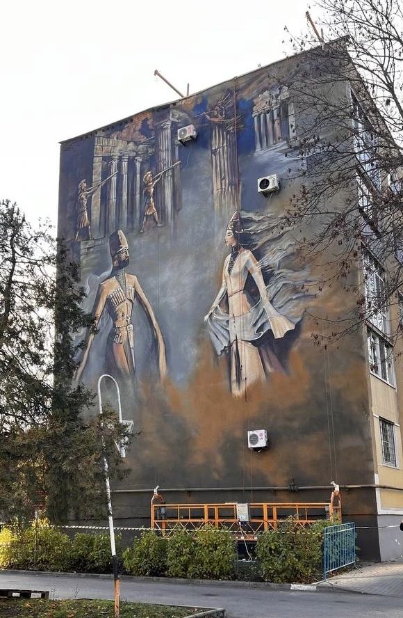 М-4«Дон» зыфиIорэ федеральнэ гъогумкIэ къалэм укъыдахьэ зыхъукIэ стеллэр щыт. Урысыем культурэмкIэ изаслуженнэ IофышIэу, Адыгеим изаслуженнэ сурэтышIэу Бырсыр Абдулахь ащ исурэт ыгъэхьазырыгъ. 2021-рэ илъэсым ышIыгъагъ. Къалэм илъэпкъ культурэ ар иIункIыбзэ шъыпкъ — итамыгъэ шъхьаIэу цур тешIыхьагъ. Псэуалъэр зэрэщытэу мыжъом хэшIыкIыгъ, чIыгум хэIэтыкIыгъ, адыгэ хъулъфыгъэ шъуашэм ипкъыгъохэр хэшIыхьагъэх: хьазырхэр, бгырыпхыр, къамэр. Тыжъымрэ къорэлъфымрэ адыгэ шъуашэхэр ащыгъхэу ащ еплъых. IофшIэнхэм пстэумкIи сомэ миллион 20-м ехъу апэIухьащт.