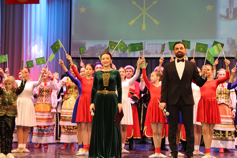 КIэлэцIыкIу ансамблэу «Мыекъуапэ инэфылъэхэм» якъашъуи тигъэгушIуагъ. КIэлэеджакIохэр дахэу фэпагъэх, жьы акIэтэу мэуджых. КIэлэцIыкIу лъэпкъ орэдыIо ансамблэу «Долинэм» узыIэпещэ. МэфэкIым диштэу лъэпкъхэр зэфэзыщэрэ орэдхэр кIалэхэм, пшъашъэхэм гум рихьэу къызэдаIуагъэх. Тхьабысымэ Умарэ ыусыгъэу «Сикъуаджэр» къызыхадзэм, залым чIэсхэр Iэгу афытеуагъэх. «Долинэм» орэд къыIогъэ къодыеп, адыгэ къашъохэри къышIыгъэх.