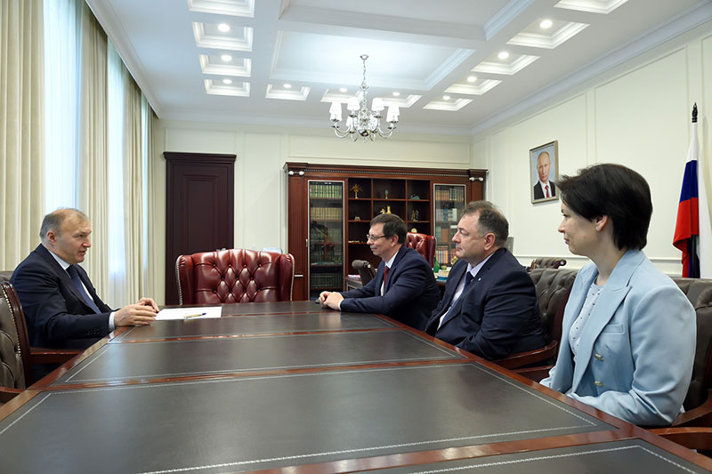 Адыгэ Республикэм и ЛIышъхьэу КъумпIыл Мурат правительствэм и Унэ тыгъуасэ щыригъэблэгъагъэх лъэпкъ-ушэтэкIо университетэу «ЭкономикэмкIэ апшъэрэ еджапIэр» зыфиIорэм иректорэу Никита Анисимовымрэ ащ...