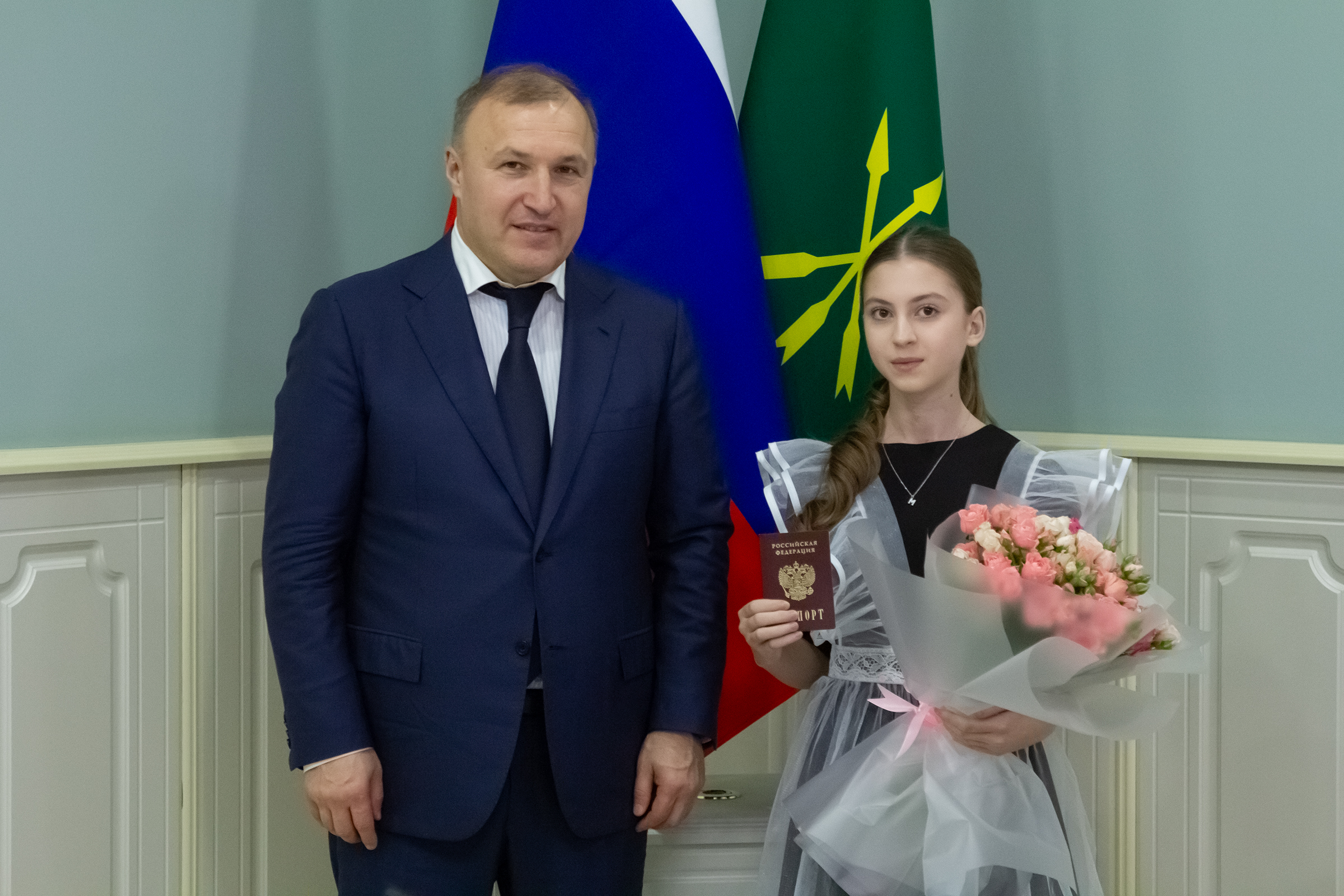 Адыгеим и ЛIышъхьэ Урысыем иныбжьыкIэхэм республикэмрэ хэгъэгумрэ апае текIоныгъакIэхэмрэ гъэхъэгъакIэхэмрэ ашIынхэу зафэлъэIо нэужым паспортхэр къазэраратыгъэхэм ыкIи Урысыем и Конституцие и Мафэ афэшI афэгушIуагъ.