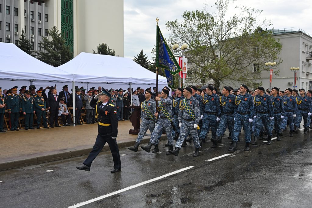 ТекIоныгъэшхом имэфэкI игъэкIотыгъэу Адыгеим щыхагъэунэфыкIыгъ, зэо илъэсхэм аусыгъэ мэкъамэхэр къырагъэIуагъэх. Мыекъопэ гарнизонымрэ Адыгэ Республикэм ихэбзэухъумэкIо къулыкъухэмрэ ядзэкъулыкъушIэхэр зэготхэу урамым къызэрэрыкIуагъэхэр Iофтхьэбзэ пстэуми анахьэу къахэщыгъ.