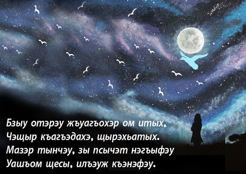 Осым чIеухъумэ ТэкIо, телъэкIоны, тыкъэуцурэп, Зэ укъызыуцурэм уежьэжьышъурэп. Уадиштэжьрэп узхэтыгъэмэ уежьэжьми, УелъэкIонзэ ясатыр ухэуцожьми. Джары ар зэрэхъурэр ренэ къэс, Уигъусагъэм ышъхьэ къызиIэтрэм Уашъоми шъхьэдэкIэу зызиIэтрэм, Шъхьасэу зыхеушъафэ ишIуфэс. Ори ар зэхапшIэу еогъажьэ, Ау гуцафмэ оIошъ, джыри уежэ ЗыкъышIэжьэу, тIэкIуи къэушъэбыжьмэ, УишIушIагъэ горэ ыгу къэкIыжьмэ… Ыгу къэкIыжьмэ, оIо, икъиныгъом ПлIэIоу, ныбджэгъу плIэIоу кIэбгъэкъуагъэр, Ыгу къэкIыжьмэ мыхьамелэу дэбгощыгъэр, Мыжъо хьылъэу ыпсэ тепхыгъагъэр. Ау зэхэкIы гъогур, уеунэкIы, ЩыкIымафэшъ, хъотым узэблещы, Ныбджэгъугъэр осым чIеухъумэ, Ау пшIошъ хъурэп, джыри оухъумэ. Отхъу осыр, отхъу уимыгъащтэу, ИчъыIагъэ пкъышъор ымыгъэщтэу. Джыри укIэлъэкIо, гугъэр кIодрэп, Ау уиныбджэгъугъэм узэхихрэп. Ары, ныбджэгъугъэм узэхихрэп. Ащ джы иныбджэгъухэр фэшъхьафых, Гъогогъу фэхъужьыгъэхэр ихымэх, Ау хэхыгъэу ахэр егъэнафэх, Ихъярыгъом пчъэхэр афыIуехы. Джары ар зэрэхъурэр ренэ къэс. Уигъусагъэм ышъхьэ къызиIэтрэм, Уашъоми шъхьэдэкIэу зызиIэтрэм, Шъхьасэу зыхеушъафэ ишIуфэс. КъэIэбэщтэп, къыубытыщтэп пIапэ, Икъэбзагъи ыгъэпэжьрэп напэм, ТIури зы щыхъужьэу шIойи къабзи, МылъкукIэ пкъыри псэри егъэсэи. Ори уфэенэп ебгъэхъунэу Къыбдытетэу гъогоу къыхихыгъэм, Удыхэтэу сыдми щыIэныгъэм, Iэчъэ-лъачъэу гъашIэр къэбгъэшIэнэу…