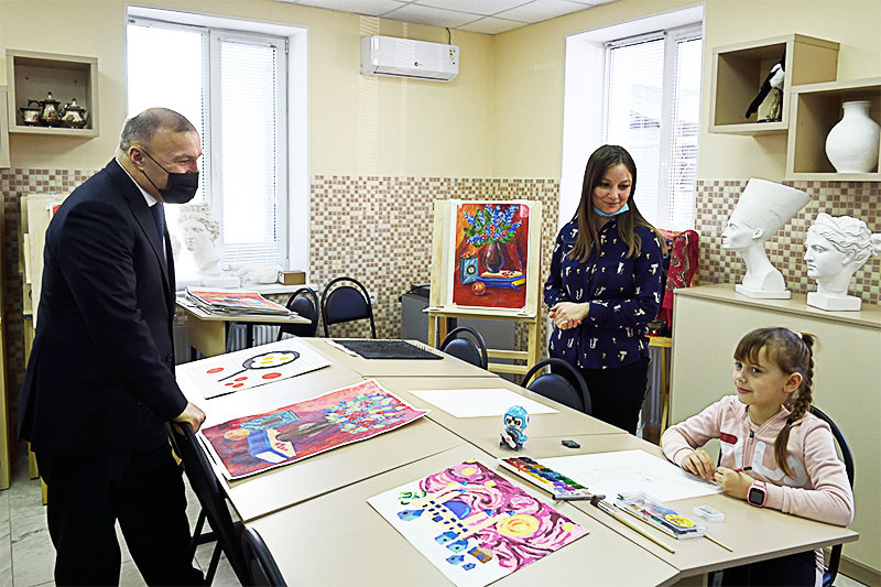 Başkana eşlik eden heyet ilk önce Dondukovska’da bulunan sanat okulunu ziyaret etti. Farklı bütçelerden salınan yaklaşık 24.7 rublenin harcanması ile geçtiğimiz aralık ayında sanat okulunun tadilat çalışmaları bitirilmişti. Şimdi gerekli bazı müzik aletleri ve interaktif teknoloji sanat aletleri okula alındı. Bunlar ve diğer ek çalışmalar için de 2,3 milyon ruble harcandı.