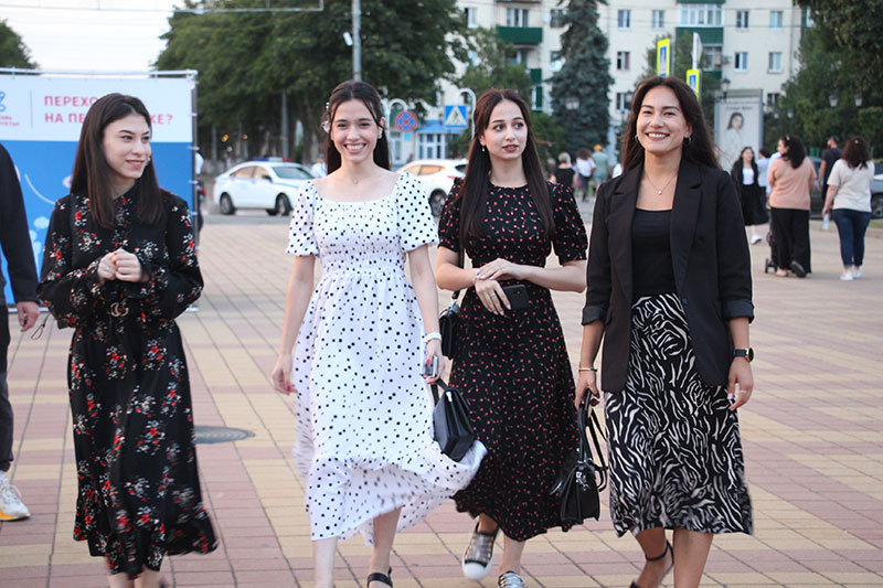 Анахь дахэу пчэгум къыщышъохэрэм шIухьафтынхэр афашIых. Урыс пшъашъэхэм апэрэ чIыпIэхэр афагъэшъуашэхэу къызэрэхэкIырэм къеушыхьаты искусствэм лъэпкъхэр зэзэрэзэфищэхэрэр.