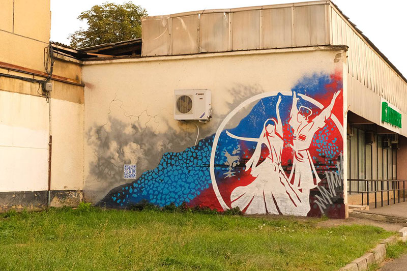 В Майкопе на зданиях появились граффити в честь Дня российского флага