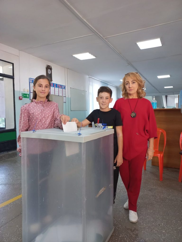 Нафсет пришла на выборы с детьми. Руслан и Алина Ашиновы учатся в 7 и 5 классах. Практически с первого класса они с родителями участвуют в выборном процессе - бросают в урну бюллетени с волеизъявлением старших.
