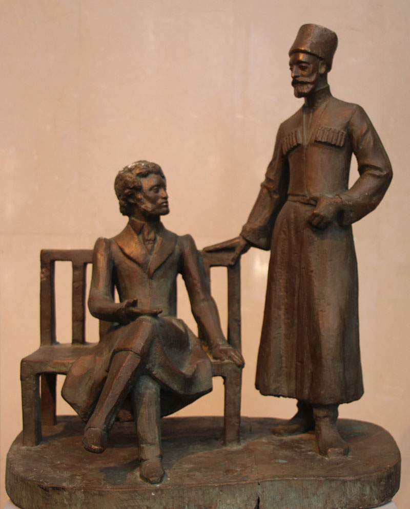 ТхэкIо цIэрыIоу А. С. Пушкинымрэ Ш. Нэгъумэмрэ язэIукIэгъу фэгъэхьыгъэ IофшIагъэхэр гъэшIэгъоных. А. Пушкинымрэ Ш. Нэгъумэмрэ язэдэгущыIэгъу зэрэкIорэ шIыкIэр скульпторым, сурэтышIым къагъэлъагъо. Адыгэхэм ацIэ дунаим шIукIэ щызыгъэIугъэ А. Пушкиным ынэгу укIаплъэ, псэ зыпыт игущыIэхэр зэхэпхыхэ пшIоигъоу охъу.