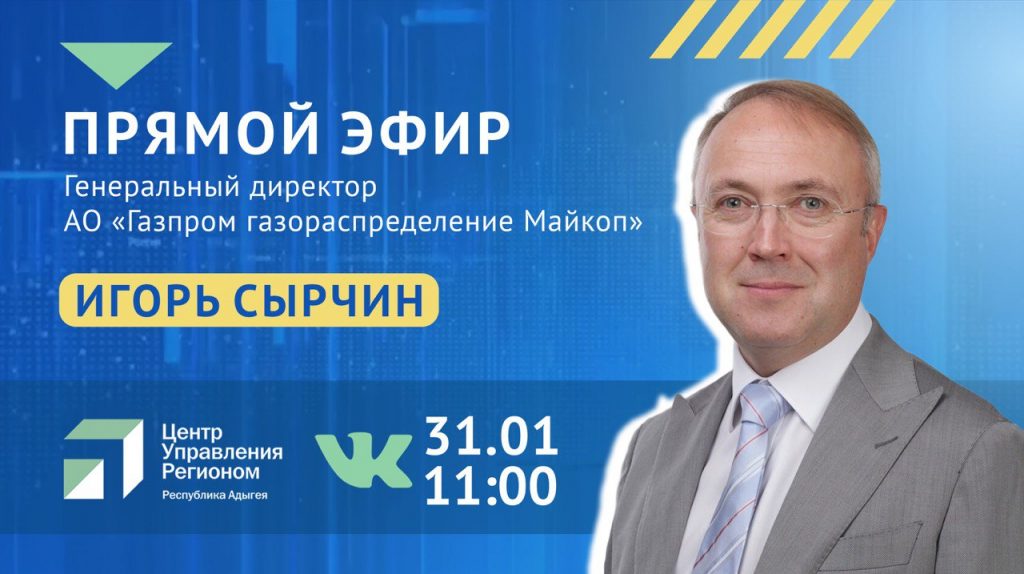 В Центре управления регионом РА 31 января в 11.00 пройдет прямой эфир с гендиректором