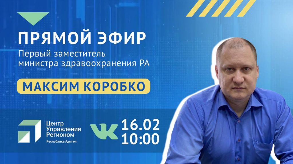 16 февраля в 10:00 в Центре управления регионом Республики Адыгея первый замминистра здравоохранения РА Максим Коробко станет спикером прямого эфира.