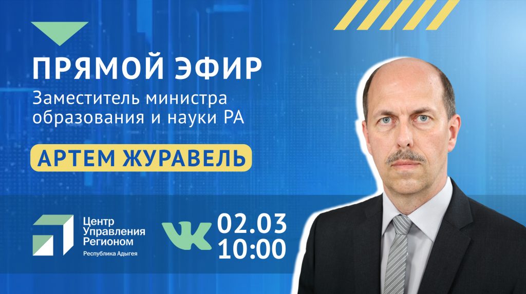 2 марта в 10:00 заместитель министра образования и науки Адыгеи Артем Журавель ответит на ваши вопросы. Задавайте их спикеру на платформе «Госуслуги. Решаем вместе» по ссылке https://pos.gosuslugi.ru/lkp/direct-line/192/. Ответы прозвучат в прямом эфире.