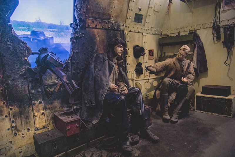 На сегодняшний день ни в одном музее мира нет такого количества многофигурных композиций в скульптуре, как в «Поезде Победы». Но не только скульптурами уникальна выставочная экспозиция, интересно также и ее мультимедийное сопровождение: 50 видеопроекторов, 18 видеостен, 12 тач-столов, которые благодаря световым и звуковым эффектам воссоздают захватывающие воздушные бои и массированные танковые атаки, рисуют картины походной солдатской жизни и тихие воспоминания мирного довоенного времени. Всё это делает экспозицию более проникновенной, а ощущения от увиденного — более острыми.