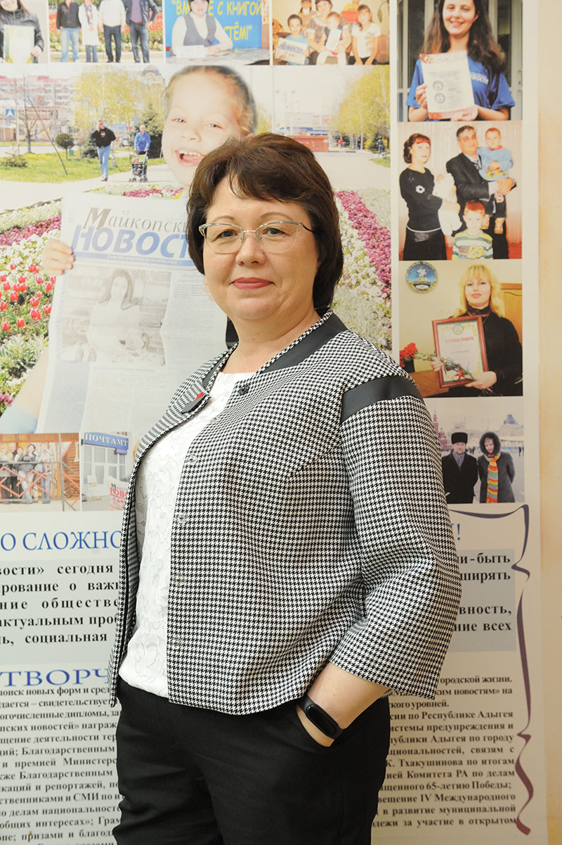 «Гъэзетым иредакцие сызыщылажьэрэр илъэс 30 хъугъэ. Мыекъопэ типографием ищыкIэгъэ печатникхэр, наборщикхэр рагъэджэнхэу зэраугъоихэрэм ехьылIэгъэ мэкъэгъэIур ошIэ-дэмышIэу сынэгу къыкIидзэнэу хъугъэ. А уахътэм оборудованиякIэу типографием къащагъэр сшIогъэшIэгъон хъугъагъэ. Еджэныр къэсыухи, 1991-рэ илъэсым гъэзетэу «Майкопские новости» зыфиIоу икIэрыкIэу къыдагъэкIэу рагъэжьэжьыгъагъэм иапэрэ номер итыщтхэр хэсхыгъагъэх. Игъорыгъозэ гъэзетыр къыдагъэкIэу заублэм, ащ дакIоу корректировщик сэнэхьатри сIэ къизгъэхьагъ. 1993-рэ илъэсым мы гъэзетым корректорэу Iоф щысшIэу сыублагъ. 2004-рэ илъэсым обозреватель IэнатIэм зыфэзгъэзагъ. А лъэхъаным гъэзетым редактор шъхьаIэу иIэгъэ Александр Шутихиным игъо къысфилъэгъугъ гъэсэныгъэмрэ культурэмрэ афэгъэхьыгъэ очеркхэмрэ статья цIыкIухэмрэ згъэхьазырынхэу. Мы чIыпIэр сыгу рихьыгъ, сыда пIомэ гъэзетым инэкIубгъохэм къарыхьэрэ материалхэм азыныкъо нахьыбэр обозревателым ыгу щыпхырэкIых. Анахьэу ар зыфэгъэхьыгъэр цIыф гъэшIэгъонхэм адысиIэгъэ зэдэгущыIэгъухэр ары. 2014-рэ илъэсым гуфакIохэу Донбасс кIогъэгъэ хъулъфыгъэхэм афэгъэхьыгъэ статьяр сыгу икIыжьырэп. Мамыр сэнэхьатхэм арылажьэхэрэр цIыфхэм яшъхьафитныгъэ фэбэнэнхэу Донбасс кIогъагъэх. Ахэм къысфаIотагъэр зэкIэ сыгу щызэпэкIэзгъэкIыгъ, материалым игъэхьазырын бэрэ сыпылъыгъ. Сыда пIомэ ищыкIэгъэ гущыIэхэр къысфэмыгъотэу бэрэ сыхэтыгъ».