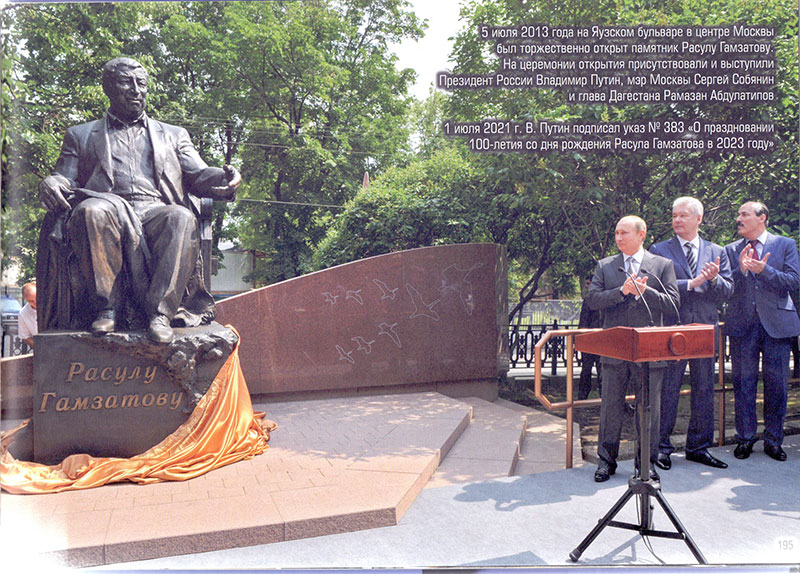 «…Расул Гамзатович Гамзатовыр пшъэрылъ ин дэдэу анахь зэшIохыгъуаер зынэтIэгу итхэгъагъ, ежь псаоу щыIэзэ классик хъун фэягъ. УсэкIошхом ышъхьэкIэ пшъэрылъышхо зэшIуихыгъ — зэрэдунаеу дагъыстан лъэпкъ гушъхьэлэжьыгъэм иунапчъэ хьалэлэу къафызэIуихыгъ. Тхылъеджэ миллионхэм, Дагъыстан иусэкIо ин изэчый ялые ашIагъ, агу ыштагъ ыкIи апэблагъэ хъугъэ. Ныбжьи дагъыстан чIыгу зылъапэ нэмысыгъэхэми, ар игупшысэ лъагэкIэ агоуцуагъ. Зыщыщ авар лъэпкъ закъор арымырэу, ар зэкIэ авархэм япоэзие ианахь лъэгэпIэ иныгъ. Расул Гамзатовыр дагъыстаныгъ, россияниныгъ ыкIи зэкIэ Дагъыстан ыцIэкIэ, зэрэхэгъэгоу дэгущыIэщтыгъ. Дагъыстан къушъхьэтх лъэгабэ зэриIэм фэдэу, гамзатовскэ поэзием лъэгэпIабэ иI. Ау анахь гум хапкIэу, хэжъагъорэр «Журавли» зыфиIорэ усэ-орэдыр ары. Ар заом щыфэхыгъэхэм яшIэжь и Гимн, лъэпкъ лIыхъужъныгъэу мыухъэфыщтым осэшIу фэзышIыгъ. УсакIом итворчествэ ныбжьырэу къэкIощт лIэужхэми щысэтехыпIэ-гъэсапIэу яIэщт, лъэпкъымкIэ псэемыблэжьныгъэ зэчый зафэу, хьалэлэу хэлъыгъэр щысэшIоу яIэщт», — щыкIигъэтхъыгъ игущыIэ Сергей Меликовым.