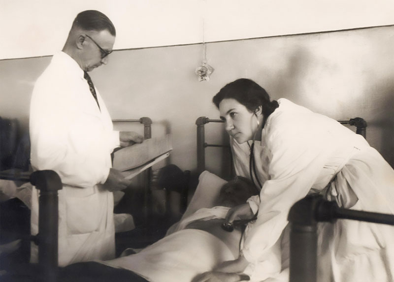 1928-рэ илъэсым къыщегъэжьагъэу 1941-м нэс Н. И. Клюевыр къэлэ сымэджэщым итерапевтическэ отделение ипэщагъ, ишIэныгъи иопыти сэнэхьатым хигощагъ. Ащ ыужым, сымэджэщым иврач шъхьаIэ IэнатIэр ештэжьы. Клюевыр ныбжьыкIэу сымэджэщым къыIухьэхэрэм лъэшэу афэсакъэу, яIэпэIэсэкIэу, шIэныгъэхэмкIэ адэгуащэщтыгъ. 1946-рэ илъэсым отделением къагъэкIогъэгъэ специалист ныбжьыкIэу И. В. Ерохинам игъэсэкIуагъ Николай Ивановичыр, ыужым ар хэкум щызэлъашIэрэ врач хъугъэ.