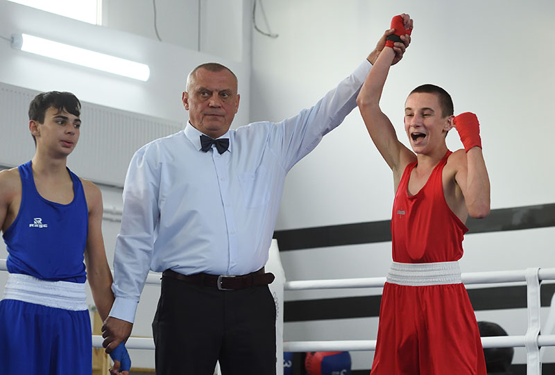 Мыщ фэгъэхьыгъэ мэфэкI зэхахьэу зэхащагъэм къыщыгущыIагъ ыкIи боксыр зыгу рихьыхэрэм, ащ пыщагъэхэм къафэгушIуагъ Мыекъопэ къэлэ администрацием ипащэу Геннадий Митрофановыр.