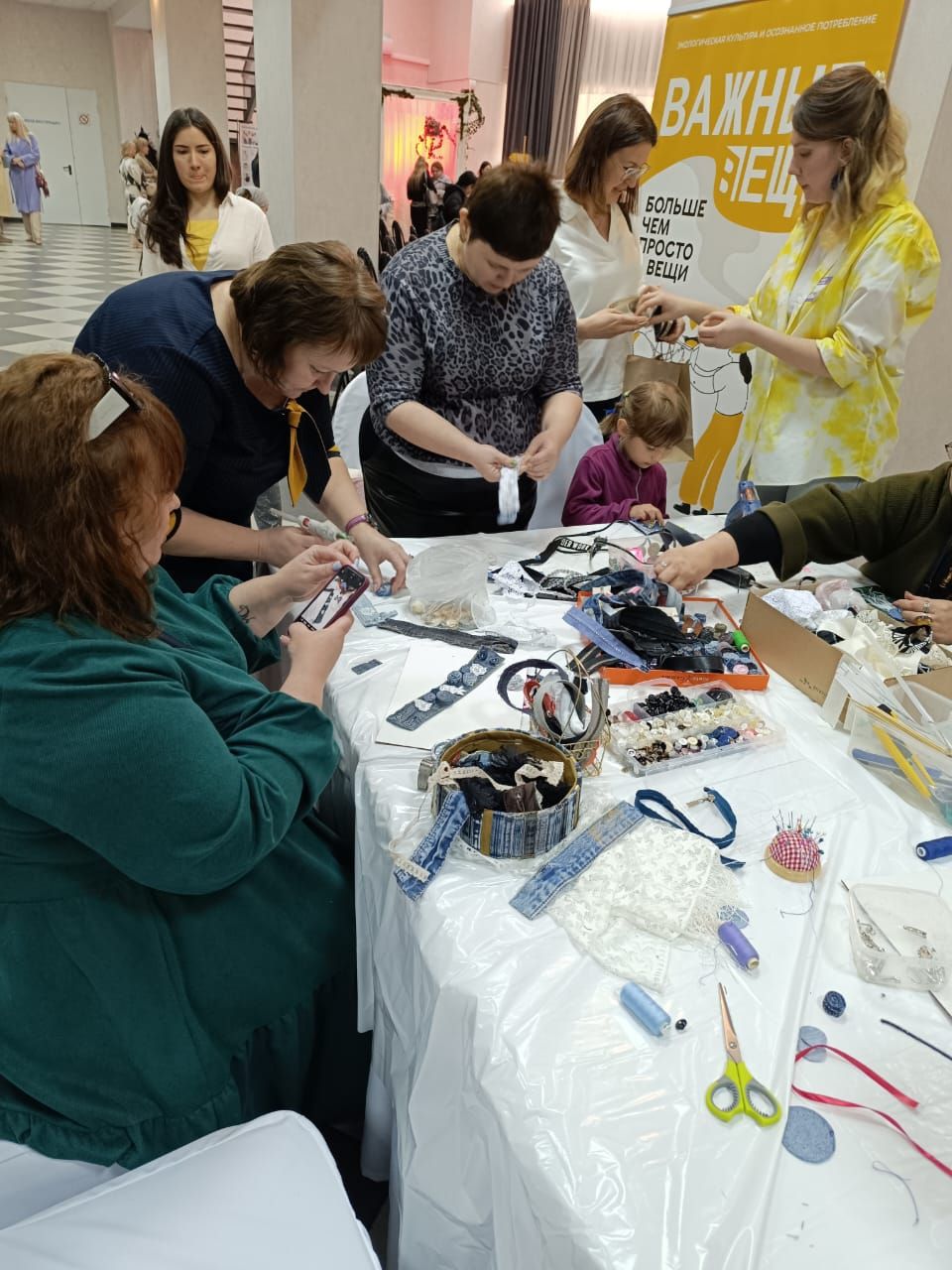 Творческэ цIыфхэр, мысатыу зэхэхьэ зэфэшъхьафхэм ялIыкIохэр, волонтерхэр, АР-м культурэмкIэ, IофшIэнымрэ социальнэ хэхъоныгъэмрэкIэ иминистерствэхэм яIофышIэхэр — пстэумкIи нэбгыри 150-рэу ащ къекIолIагъэмэ щыгъынхэм ятIонэрэ щыIэныгъэ зэрагъотыжьырэр къарагъэлъэгъугъ. Амыгъэфедэжьырэ щыгъынхэм ахэшIыкIыгъэ хьап-щыпхэм ягъэхьазырынкIэ мастер-классхэм хьакIэхэр ахэлэжьагъэх, ежь-ежьырэу гъэдэхэн пкъыгъохэр зыфашIыжьыгъэх, кIэдыкIыжьыгъэ Iэпэщысэхэм яермэлыкъи Iоф ышIагъ. Ау «Эко-девичникым» ыгупчэу, нахь шъхьаIэу хъугъэр джинсым хэшIыкIыгъэ зэштэгъу 30-м ехъоу Iофтхьабзэм къыщагъэлъэгъуагъэхэр ары. Пстэури ащыгъыгъэ щыгъынхэм ахэдыкIыгъэх. АКъУ-м и Мыекъопэ къэралыгъо гуманитар-техническэ колледж иеджакIохэм ахэм ягъэхьазырын Iоф дашIагъ. Модельер-конструкторэу адэлэжьагъэр еджапIэм
