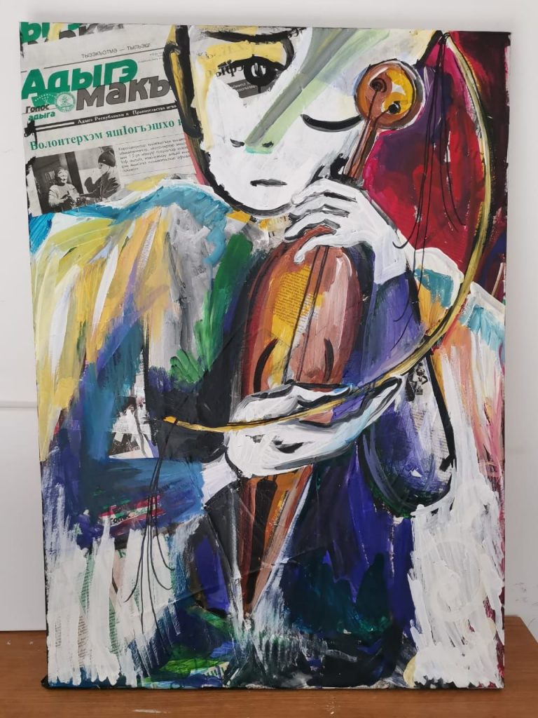 — Ары шъыпкъ. А Iофым ренэу тытегущыIэ, илъэс пчъагъэхэм а гумэкIыгъом тыхэт. Тэ тизакъоп, нэмыкI лъэпкъхэми яныдэлъфыбзэкIэ ар ягумэкIыгъошху. ЕтIанэ, хэтрэ лъэпкъи ежь ымакъэ иI. Адыгэ макъэр, сэ зэрэзэхасшIэрэмкIэ, сызэрапIугъэмкIэ – ар шыкIэпщын,къамыл. Бзэпсхэр зэпытхъыгъэхэу къэзгъэлъэгъуагъэх. Тымакъэ бзэ закъор арэп ныIа! Культурэри, шэн-хабзэхэри ащ хэхьэх. Ахэр зэрэтIэкIэзхэрэм, ащ тыригъэгупшысэным IофшIагъэр афэгъэхьыгъ. ЦIыфэу сшIыгъэр кIэлэцIыкIуи фэд, нэжъ-Iужъи фэд. Сыд фэдэрэ ныбжь зиIи а гумэкIыгъом къызэрэзэлъиубытырэр къизгъэлъэгъукIынэу сыфэягъ. Сурэтыр апэ зысэшIым бзэпсхэр ныкъозэпытхъыхэу къэзгъэлъэгъогъагъ. Джыри гугъапIэ щыI зыфэпIоным фэдэу. Ау трагичнагъэм нахь хэзгъэхъон сIуи (театральнэ екIолIакIэхэр сикIасэхэшъ, егъэлыегъащ зыфэпIон фэдэхэр) зэпытхъыгъэхэмкIэ зэблэсхъужьыгъэх. Адыгэм ымакъэу кIодырэр къизгъэлъэгъукIыгъ. Макъэ къэбгъэлъэгъоным пае укуон ищыкIагъэп ныIа?! Зи умыIоу ар къибгъэлъэгъукIын плъэкIыщт. Арышъ, гупшысэу хэслъхьагъэр тэрэзэу къыбгурыIуагъ.