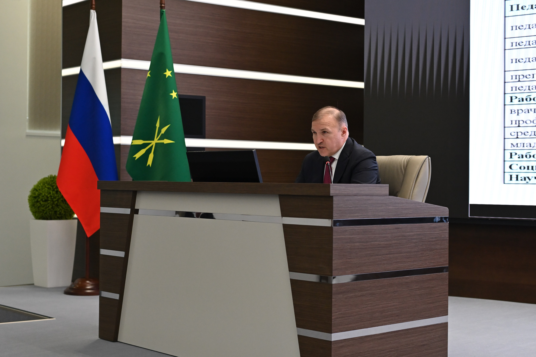 Лъэпкъ проектхэмрэ къэралыгъо программэхэмрэ ягъэцэкIэн зэрэкIорэм фэгъэхьыгъэ къэбарым щедэIугъэх АР-м иминистрэхэм я Кабинет изэхэсыгъо. Анахьэу анаIэ зытырагъэтыгъэр социальнэ лъэныкъомкIэ пшъэрылъхэу Урысыем и Президентэу Владимир Путиным Федеральнэ ЗэIукIэм фигъэхьыгъэ Тхылъым къыщигъэнэфагъэхэр ары.