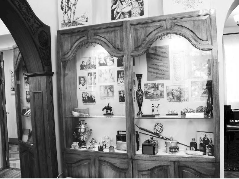 Музей унэхэм агузэгу тхакIом ипортрет ин щытэлъэгъу: ар къэгущыIэщтым фэд, инэплъэгъу нэф фабэр къычIэщы, чыжьэрыплъ, гупшысэр къетэкъохы. Хэтрэ цIыфкIи анахь мэхьанэ зиIэ фэщэныгъэ-гуетыныгъэр ащ щыIэныгъэм лъэш дэдэу фыриIагъ, илъэпкъ, ихэку, Хэгъэгум афишIэщтымкIэ къогъанэ ышIыгъэп, а шэнышIур къыдалъфыгъэу тхакIом хэпшэгъагъ.