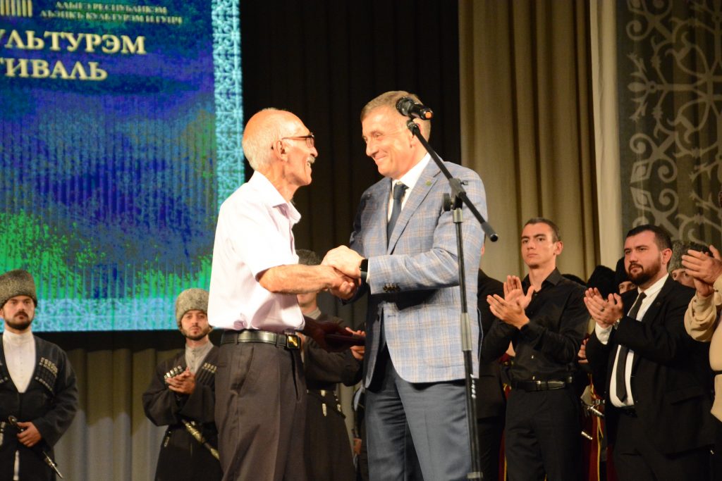 АР-м и ЛIышъхьэ иунашъокIэ «Адыгэ Республикэм культурэмкIэ изаслуженнэ IофышI» зыфиIорэ щытхъуцIэр Къэрэщэе-Черкесым культурэмкIэ изаслуженнэ IофышIэу Джумае Али фагъэшъошагъ.