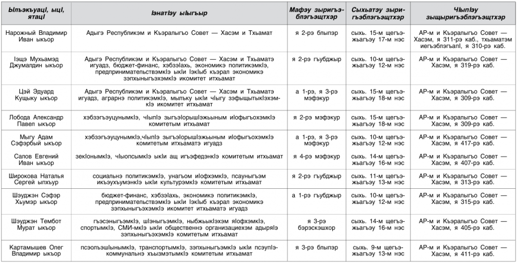 2025-рэ илъэсым Адыгэ Республикэм и Къэралыгъо Совет — Хасэм цIыфхэр зэрэщырагъэблэгъэщтхэмкIэ графикыр