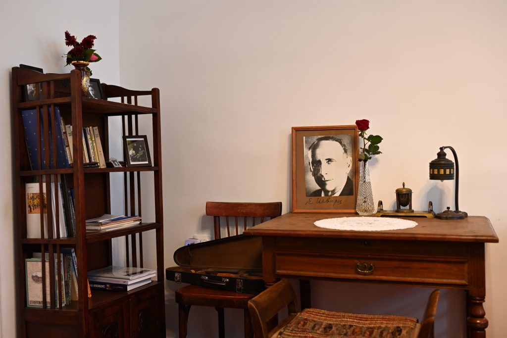 Проектэу «Шварц и Унэ» зыфиIорэм игуфакIоу Ирина Константиновам зэхищэгъэ Iофтхьабзэм илъэхъан хьакIэхэм экспозициер къаплъыхьагъ. Мария Крыжановскаям къыIотагъ ахэм якъэугъоинрэ язэхэгъэуцонрэ зэрэкIуагъэм фэгъэхьыгъэу. Унэм ибысымэу ыкIи иухъумакIоу зэрэщытым къыхэкIэу Мыекъуапэ бэрэ ар щэIэ ыкIи икъэлэ гупсэу елъытэ. Мария Олег ыпхъур игукъэкIыжьхэмкIэ къекIолIагъэхэм адэгощагъ, Адыгеим и ЛIышъхьэ ащ къыфиIотагъ ежь иунагъо ыкIи ятэжъ цIэрыIом ятарихъ къызэраухъумэрэм фэгъэхьыгъэу. Я ХХ-рэ лIэшIэгъум унэм теплъэ-гъэпсыкIэу иIагъэр зыпкъ рагъэуцожьыгъ, Евгений Лев ыкъом иунэе пкъыгъохэр, иунэгъо тхылъхэр, хъарзынэщым хэлъ сурэтхэр ыкIи документхэр Шварц иунэ щызэрагъэлъэгъунхэ амал джы щыIэ хъугъэ. Евгений Шварц зэпсэум ышIэщтыгъэ цIыфхэу идневникхэм зигугъу къащишIыхэрэм атехыгъэ нысхъэпэ зэфэшъхьафхэм якъэгъэлъэгъон унэхэм ащыщ горэм къыщызэIуахыгъ. ТхакIом игукъэкIыжьхэм гуфэбэныгъэ ин хэлъэу Мыекъуапэ игугъу къащешIы, «Ыпсэ хэлъэу» ар елъытэ. Евгений Шварц мырэущтэу ытхыгъагъ: «Сыкъызщыхъугъэ къалэм ишIуагъэкIэ сызытетым фэдэ сыхъугъ. Нэужым хэхъоныгъэ е зэхъокIыныгъэ горэу сфэхъугъэхэм алъапсэри Мыекъуапэ щызгъэкIогъэ илъэсхэр ары».