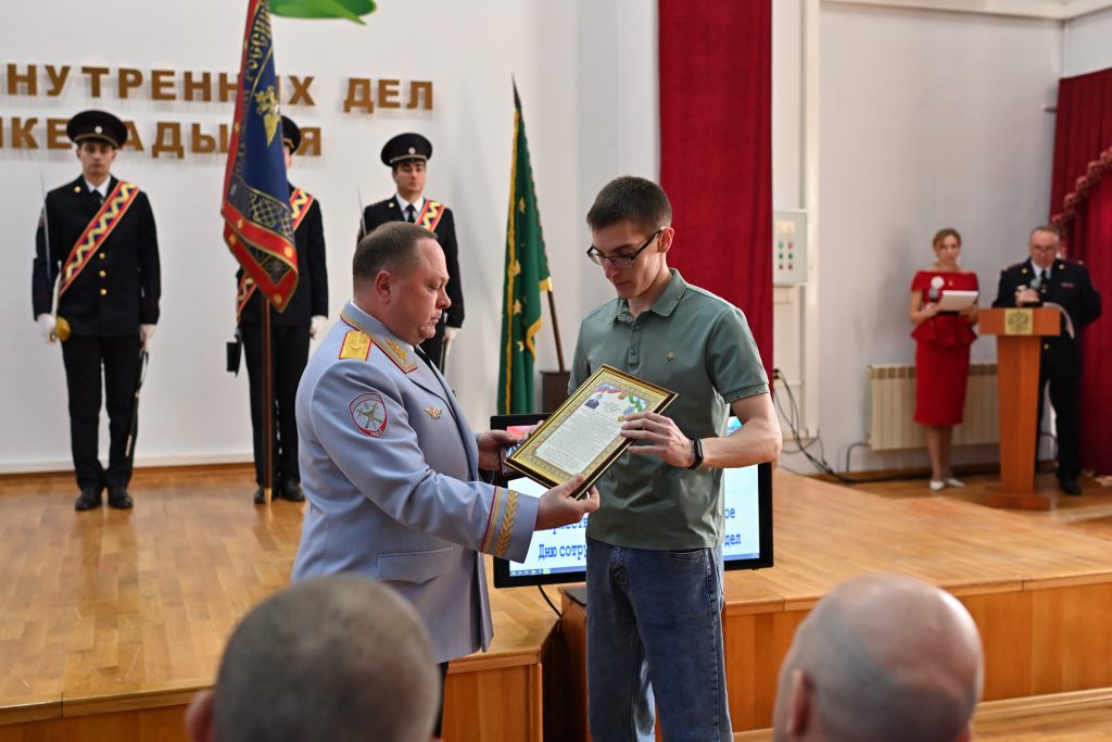 Нэужым полицием икъулыкъушIэхэмрэ иветеранхэмрэ зафигъэзагъ республикэм и ЛIышъхьэу КъумпIыл Мурат. Ащ пстэуми агу къыгъэкIыжьыгъ Президентэу Владимир Путиным Хэгъэгум иухъумакIо и Илъэсэу ыгъэнэфагъэм къэралыгъом хэушъхьафыкIыгъэ хъугъэ-шIагъэ зэрэщыхагъэунэфыкIырэр — ТекIоныгъэшхом ия 80-рэ илъэс. Хэгъэгу кIоцI IофхэмкIэ Министерствэм Iоф щызышIэхэрэм якъулыкъу ахьы дзэкIолIхэу текIуагъэхэм къагъэлъэгъогъэ щысэтехыпIэм ишапхъэхэр къахафэхэзэ: лIыгъэр, псэемыблэжьыныгъэр, хьакъыр.