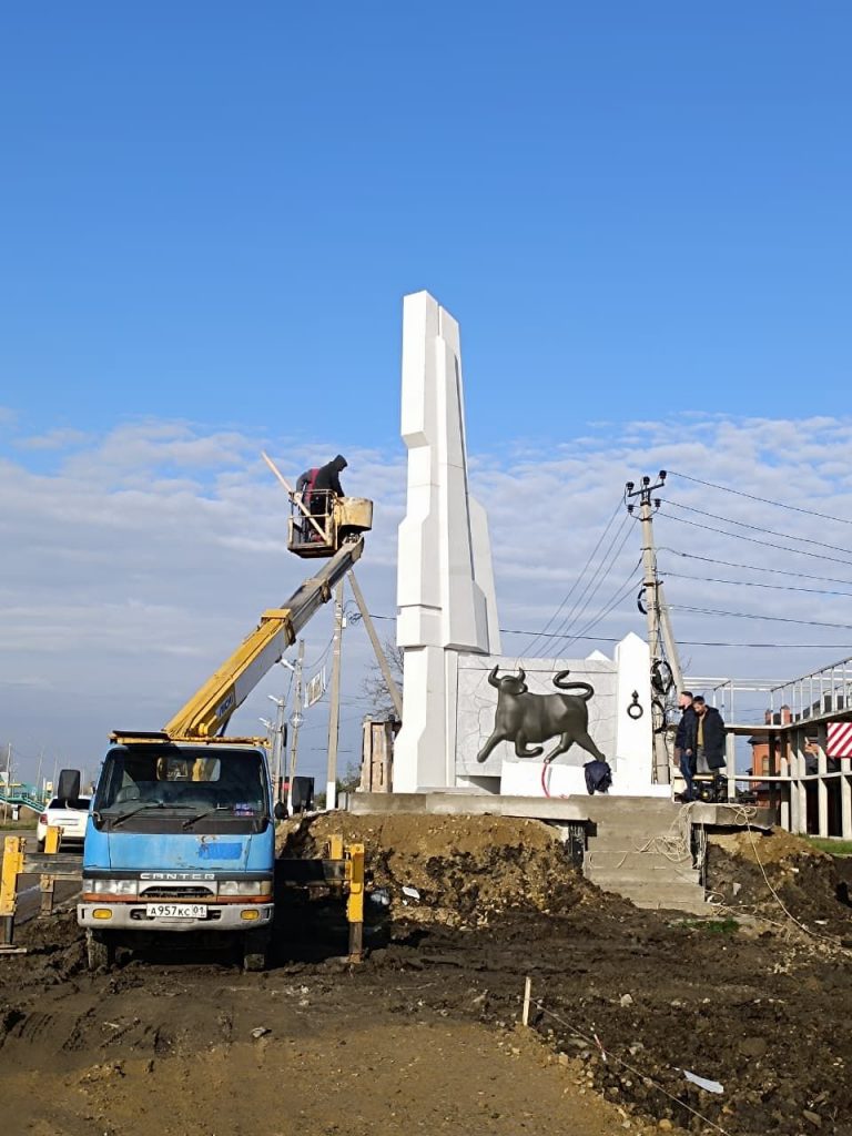М-4«Дон» зыфиIорэ федеральнэ гъогумкIэ къалэм укъыдахьэ зыхъукIэ стеллэр щыт. Урысыем культурэмкIэ изаслуженнэ IофышIэу, Адыгеим изаслуженнэ сурэтышIэу Бырсыр Абдулахь ащ исурэт ыгъэхьазырыгъ. 2021-рэ илъэсым ышIыгъагъ. Къалэм илъэпкъ культурэ ар иIункIыбзэ шъыпкъ — итамыгъэ шъхьаIэу цур тешIыхьагъ. Псэуалъэр зэрэщытэу мыжъом хэшIыкIыгъ, чIыгум хэIэтыкIыгъ, адыгэ хъулъфыгъэ шъуашэм ипкъыгъохэр хэшIыхьагъэх: хьазырхэр, бгырыпхыр, къамэр. Тыжъымрэ къорэлъфымрэ адыгэ шъуашэхэр ащыгъхэу ащ еплъых. IофшIэнхэм пстэумкIи сомэ миллион 20-м ехъу апэIухьащт.