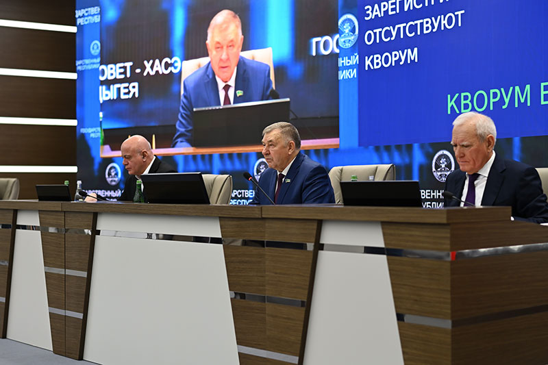 АР-м и ЛIышъхьэу КъумпIыл Мурат гущыIэр зештэм, зэхэсыгъом хэлажьэхэрэм къэблэгъэрэ мэфэкIхэмкIэ къафэгушIуагъ, шъолъыр Парламентым идепутатхэм 2025-рэ илъэсым Iофышхоу ашIагъэм пае къызэрафэразэм къыкIигъэтхъыгъ.