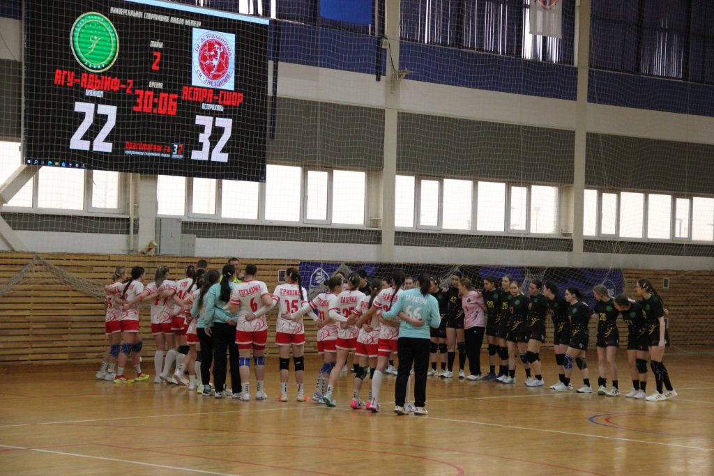 Апэрэ зэIукIэгъум иапэрэ тайм типшъашъэхэм къадэхъугъ, пчъагъэр зэфэдизэу ар аухыгъ. Ау ятIонэрэ едзыгъом хьакIэхэр хэпшIыкIэу нахь щылъэшыгъэх, 22:32-у ешIэгъур ахьыгъ. Астрахань игандболисткэхэу Дарья Цвикаловамрэ Мария Зайцевамрэ зэгъусэхэу бысымхэм якъэлапчъэ Iэгоо 15 къыдадзыгъ. Республикэм икомандэ хэтхэм нахь къахэщыгъэр Софья Пивень, ащ къэлапчъэм Iэгоуи 8 дидзагъ.
