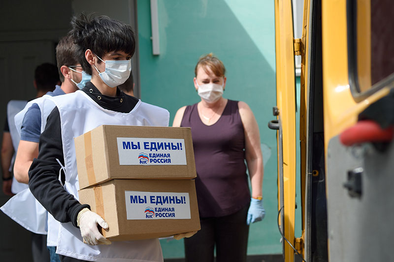 Sivil toplum kuruluşları ve ticaret erbabı ile ilişki içerisinde Rusya Birlik Partililer ihtiyaç sahiplerine ek destek paketleri ile ulaşıyor, durumları hakkında sürekli bilgi ediniyorlar. Örneğin özürlü çocuklara sahip veliler derneğinin bölgemiz şubesinin önerisi ile bini aşkın gıda paketi hazırlandı. Çocukevlerindeki ve bulaşıcı hastalık sebebiyle öz izalasyonla evlerinden dışarıya çıkmayan özürlü çocuklara bu destekler ulaştırılacak. Ayrıca yerel idarelere de gıda paketleri ulaştırıldı.