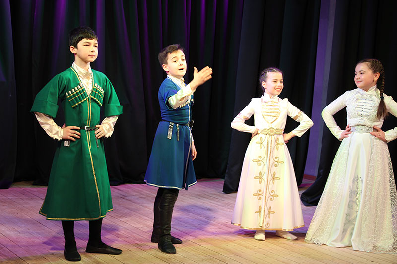 АдыгабзэкIэ гущыIэн зымылъэкIыщтыгъэхэ кIэлэцIыкIухэр усэхэм къяджэх, адыгэ орэдхэр къаIох, театрализованнэ едзыгъохэр къашIых.