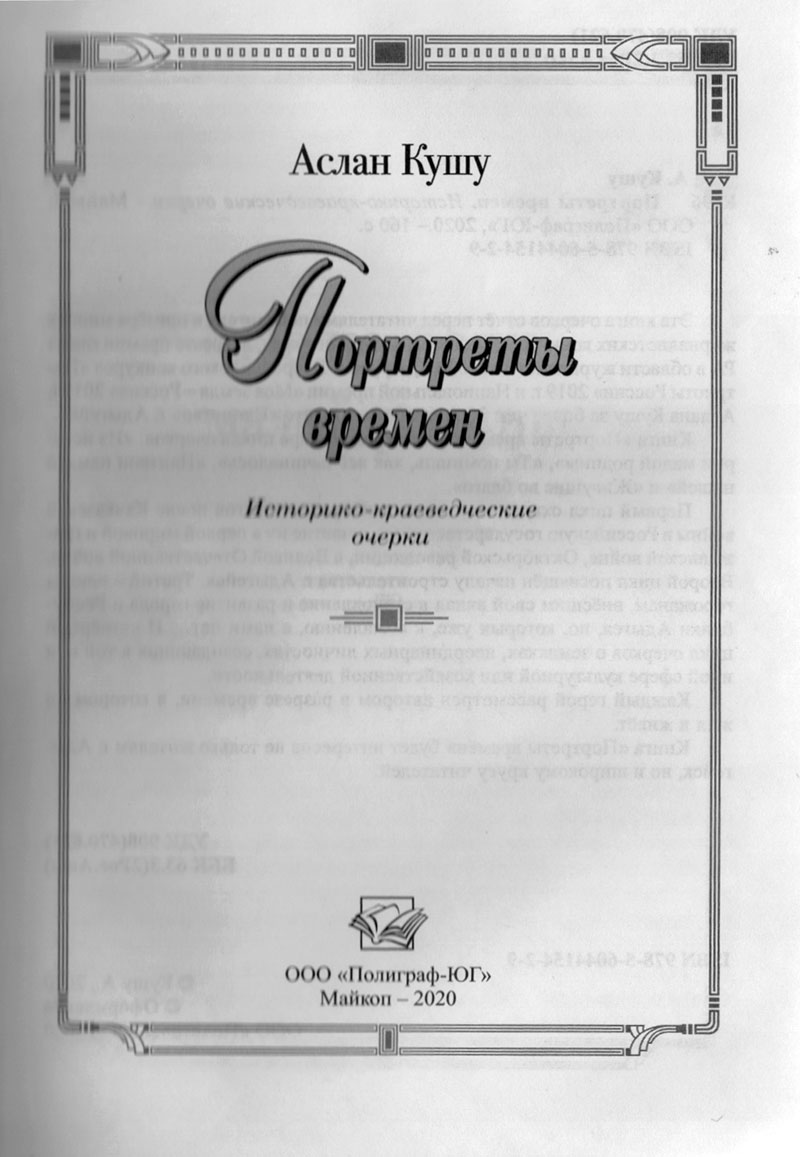 Мы зэкIэм яхьылIагъ тхылъыкIэу сапашъхьэ илъыр. Ар Адыгэкъалэ къыщыдэкIырэ гъэзетэу «ЗыкIыныгъэм» илъэс 30-м ехъугъэу Iоф щызышIэрэ Кушъу Аслъан ытхыгъ — «Портреты времен» зэреджагъэр. Очеркхэр бэу дэтых, илъэсыбэ IофшIэгъэ зэфэхьысыжьымкIэ авторыр итхылъеджэхэм адэгуащэ.