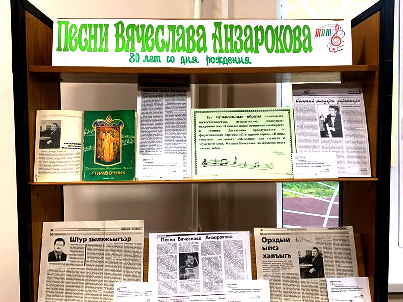 Адыгэ лъэпкъ музыкэм, искусствэм ягъогу шъуамбгъоу зэIуигъэкIотыгъ Анзорыкъо Вячеслав. Дирижер, орэдыIо, композитор ыкIи музыкант IэпэIасэм имэфэкI фэгъэхьыгъэ тхылъ къэгъэлъэгъонхэу, ищыIэныгъэ ыкIи итворчествэ къизыIотыкIыхэрэр, АР-м и Лъэпкъ тхылъеджапIэ инотнэ-музыкальнэ отдел, республикэм иныбжьыкIэхэм ятхылъеджапIэ, игупсэ къуаджэу Кощхьаблэ имузыкальнэ еджапIэ, нэмыкI чIыпIэхэми къащызэIуахыгъэх Композиторэу, дирижерэу, кIэлэегъаджэу, орэдыIоу ыкIи пщынаоу Анзорыкъо Вячеслав Мыхьамэт ыкъор зыфэдагъэр, музыкэм къыфэкIонэу зэрэхъугъэр, щыIэныгъэ шъыпкъэ зэрэфэхъугъэр, къыгъэшIагъэм лъэпкъ музыкальнэ фондыр ипроизведениехэмкIэ, ыусыгъэ орэдхэмкIэ зэригъэбаигъэр ащыкIэгъэтхъыгъ.